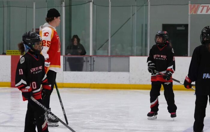 The Wranglers traded in their hockey sticks for ringette sticks and faced off against the U12 Wranglers ringette
