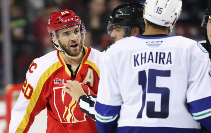 Calgary fell 4-0 to Abbotsford at the Scotiabank Saddledome on Saturday night in their final home game.