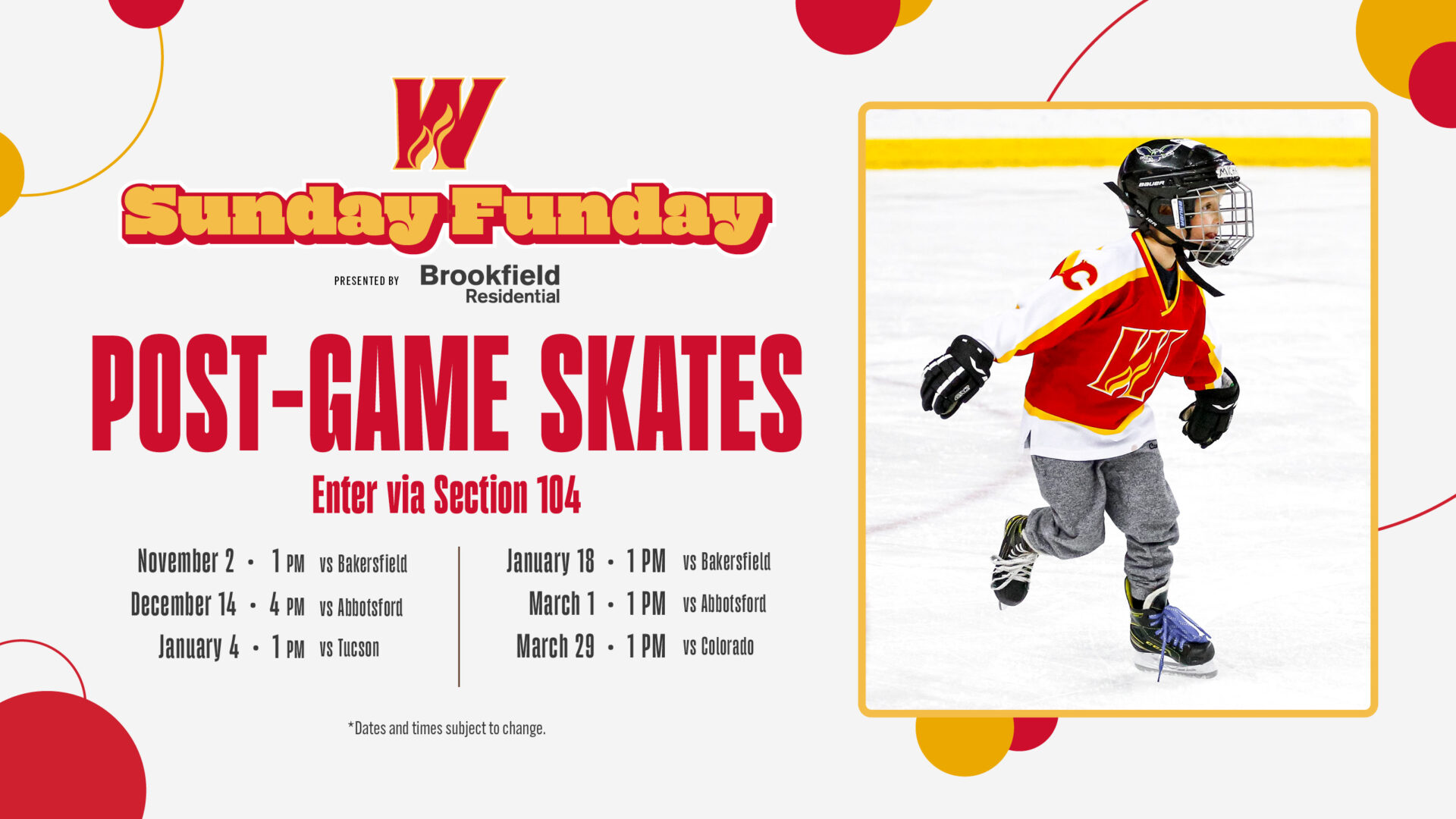 IMPORTANT INFORMATION: Post-Game Skates are operated on a First-come, First-serve basis. Fans are instructed to access the Ice via the Section 104 stairs where chairs will be provided at Ice Level to put on your skates. Anyone participating in a post-game skate must sign the waiver below. Those under the age of 18 are required to wear a helmet. Those over the age of 18 are not required to wear a helmet, although it is strongly recommended. Waivers are required to participate and can be filled out at the link below. Fans who are participating in the Post-Game skates can (1) bring their gear to their seats, or (2) exit the building after the game and re-enter with their gear.